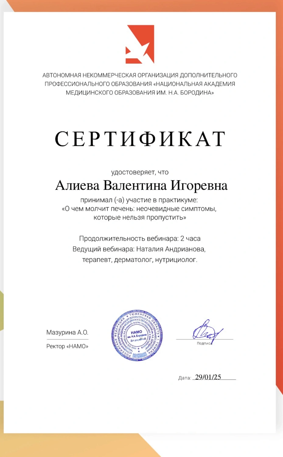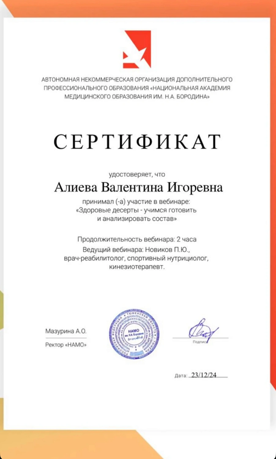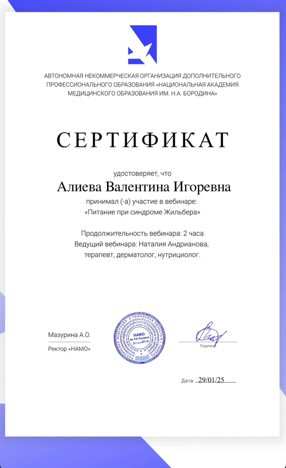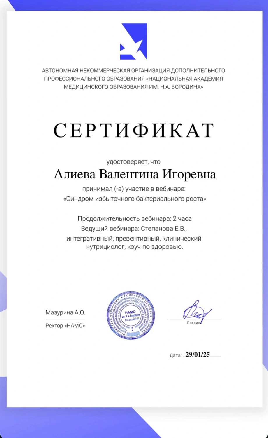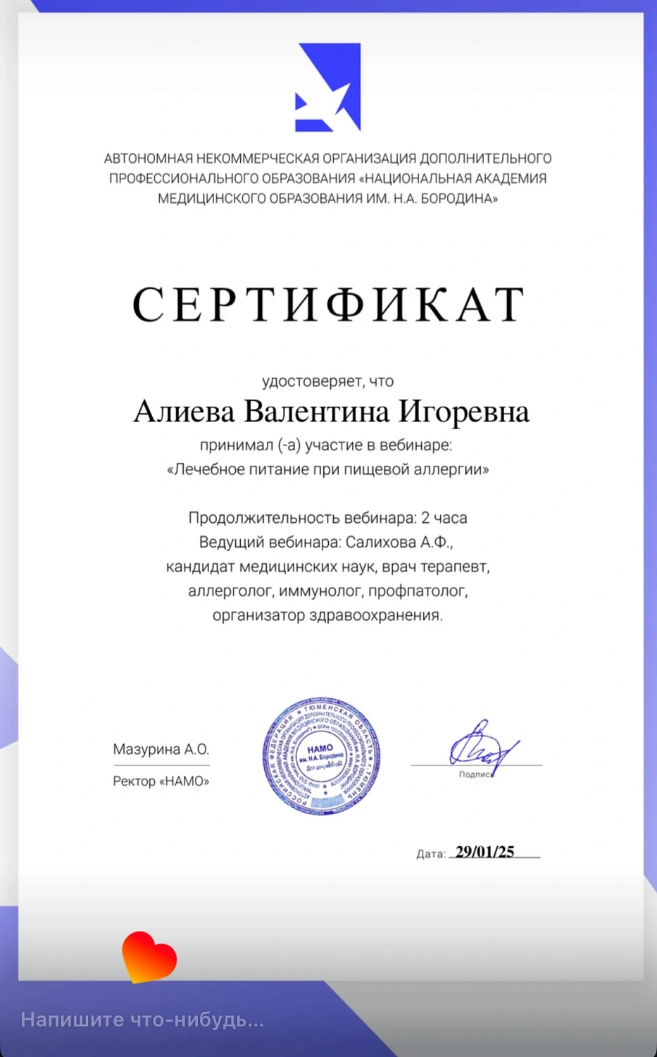 Цифровое свидетельствоО специалисте